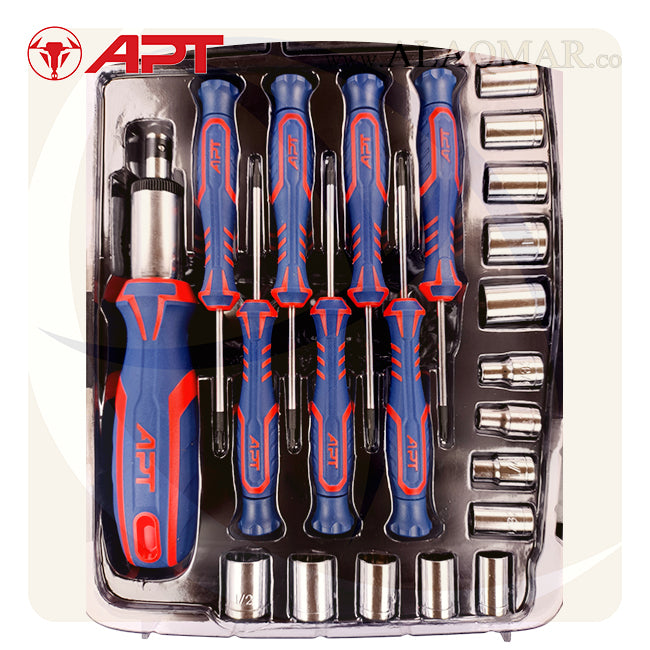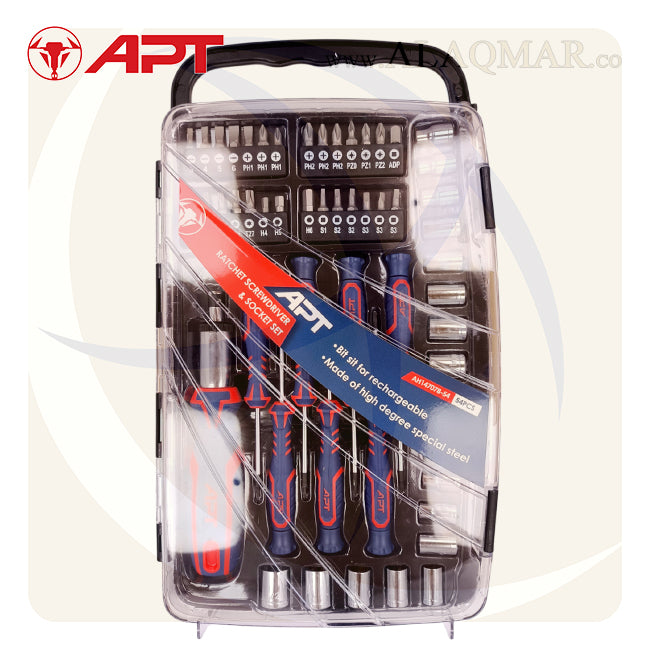 طقم مفك راتشة و لقم و سنون 1/4بوصة 54ق علبة بلاستيك AH147078-54 APT