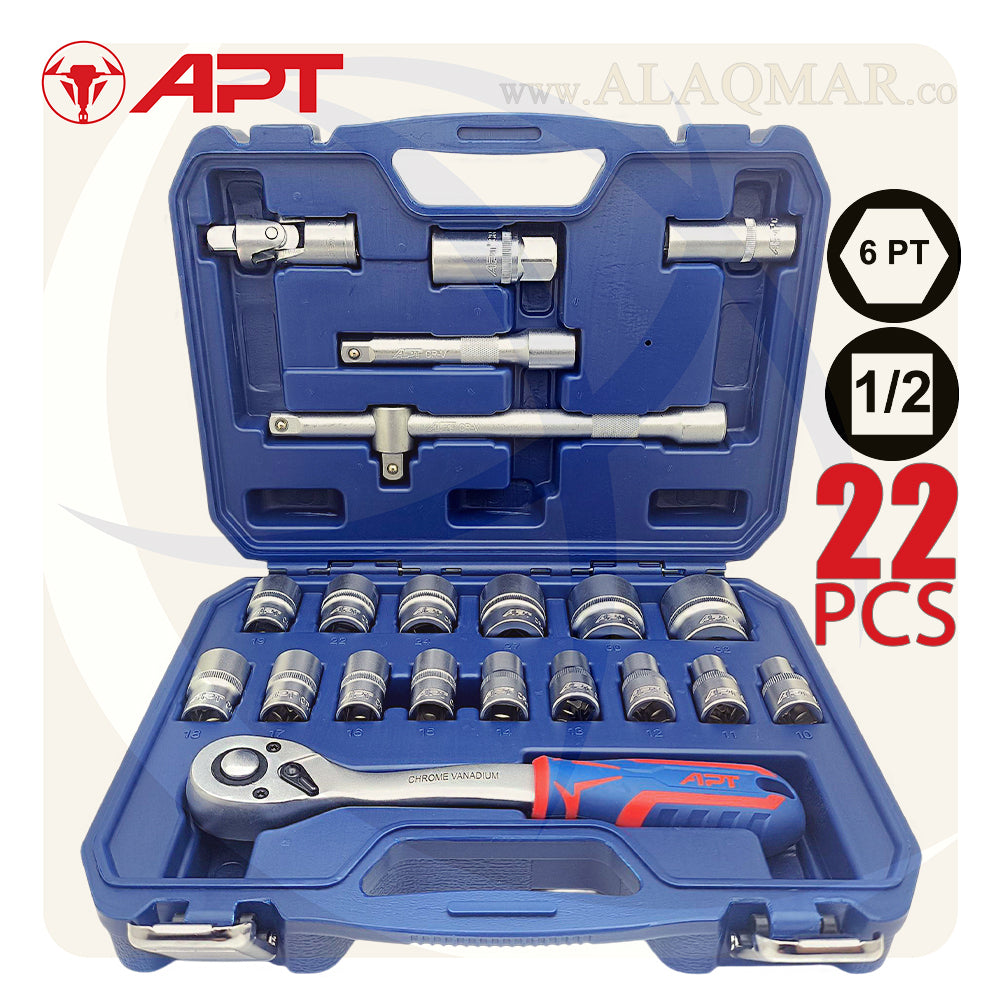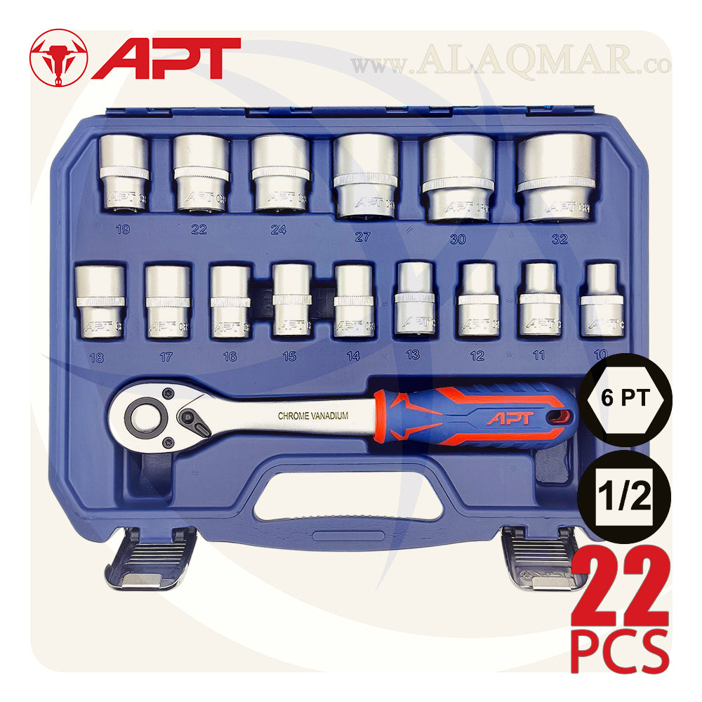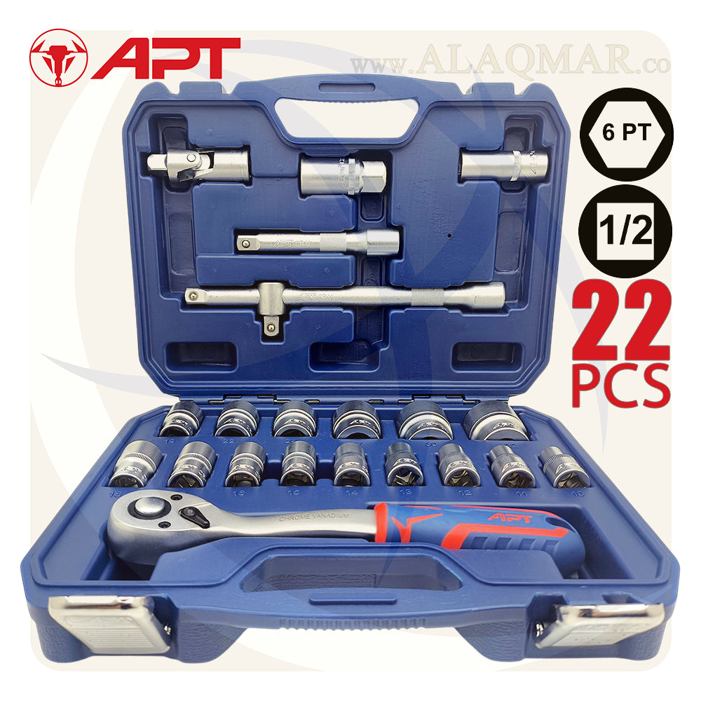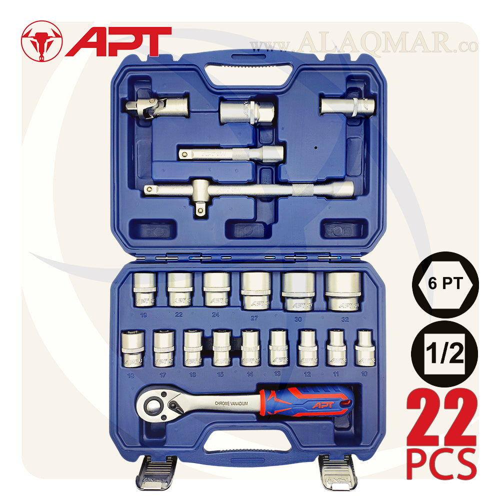 طقم لقم APT موديل 121022 مقاس 1/2 بوصة 22 قطعة - عدة الميكانيكي المحترف! 🔧