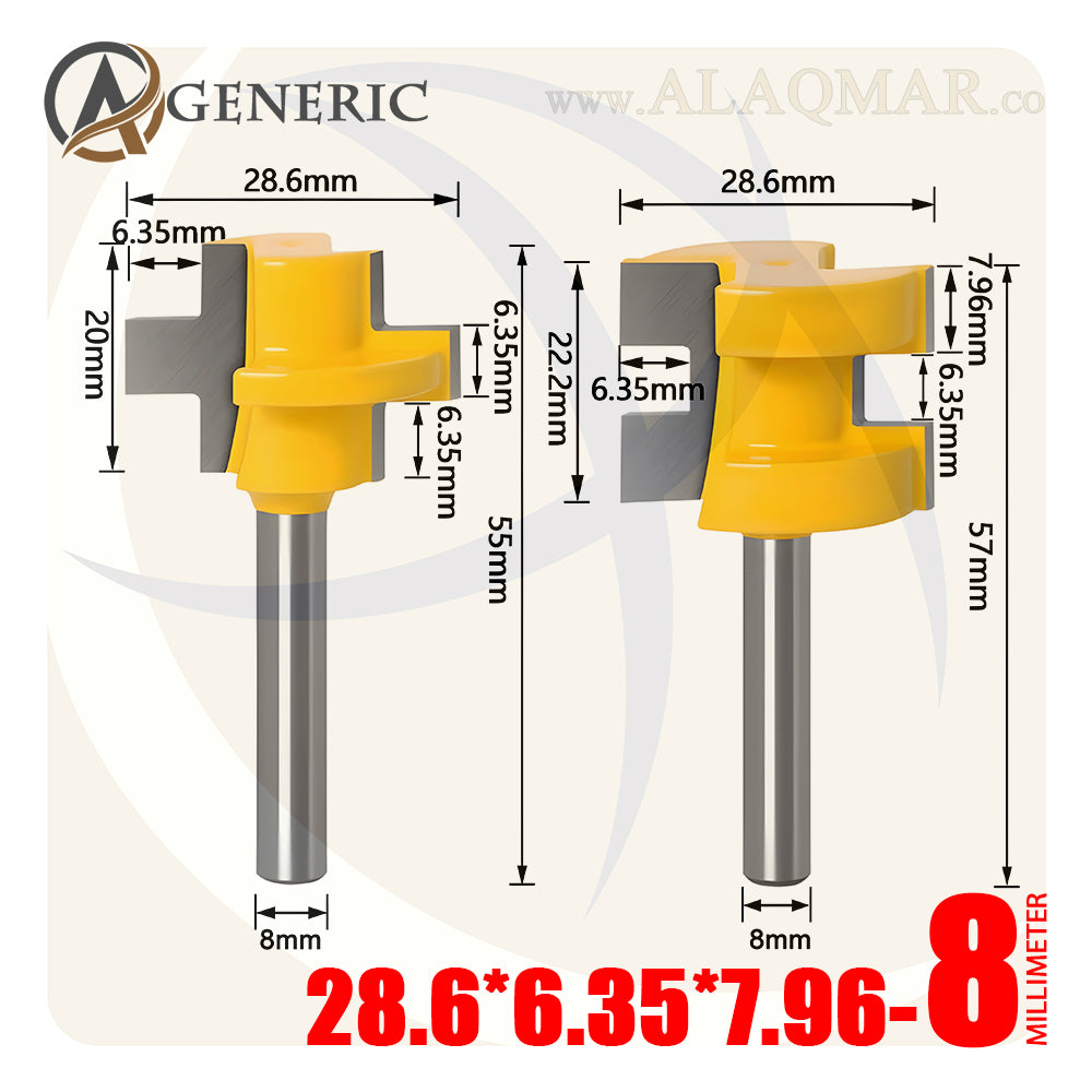 طقم بنط راوتر تجميع (لسان ومجرى) 2 قطعة - كعب 8ملي - مقاس 28.6*6.35*7.96 GENERIC